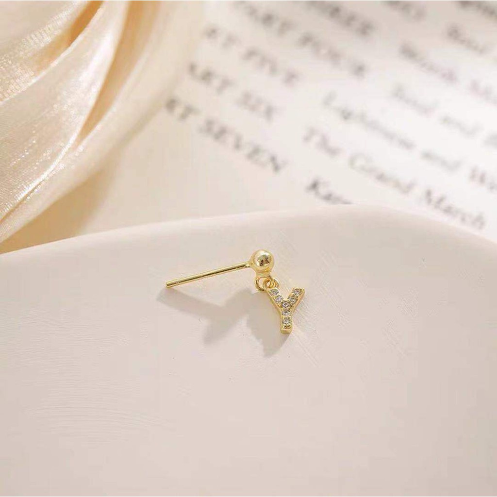 Harga "P-Z" Huruf Temperamen Anting Wanita 1pc Mini Indah Nama Anda 925 Anting Baru Berkedip Berlian
