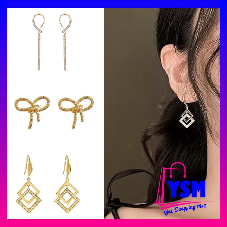 YSM ANTING TUSUK ALA KOREA 1202 ANTING WANITA KOREAN FASHION PANJANG PITA PERSEGI BUNGA EARRING MURAH IMPORT