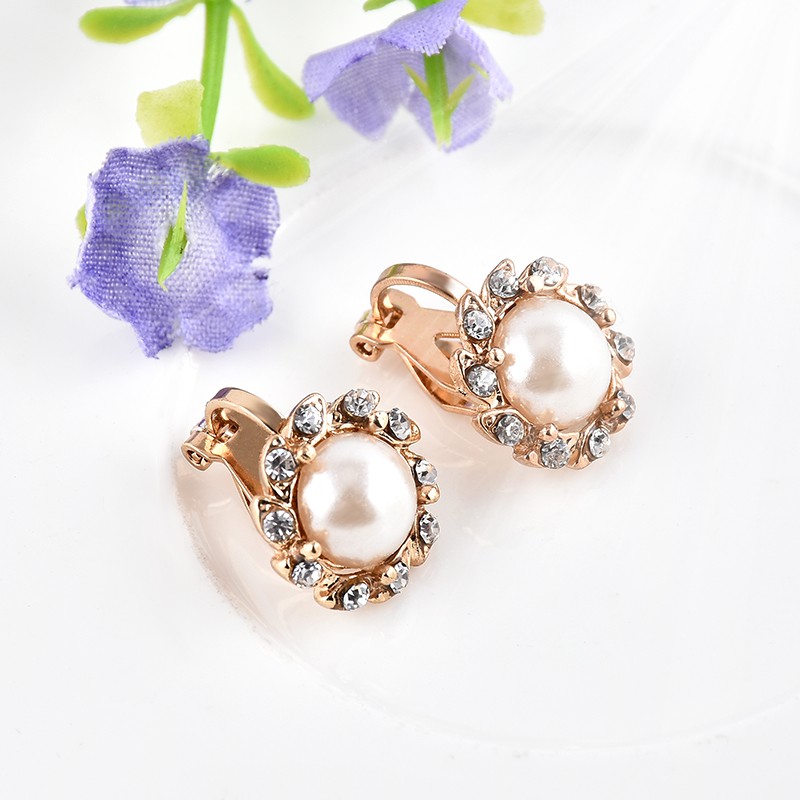 1 Pasang Anting Jepit Telinga Bulat Emas Hias Berlian+Mutiara Imitasi