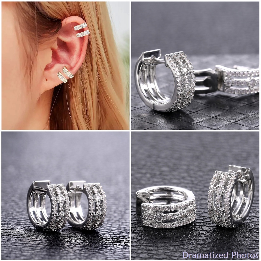 Anting Jepit Titanium Zicron Anti Karat Giwang Permata Berlian Xuping Fashion Hoops Earrings