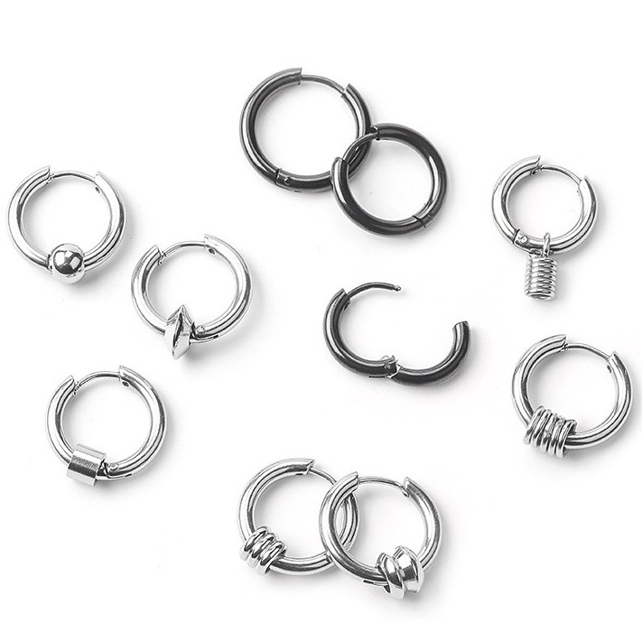 1pc Anting Hypoallergenic Bentuk Bulat Bahan Stainless Steel Gaya Hip-Hop Eropa Amerika Untuk Pria