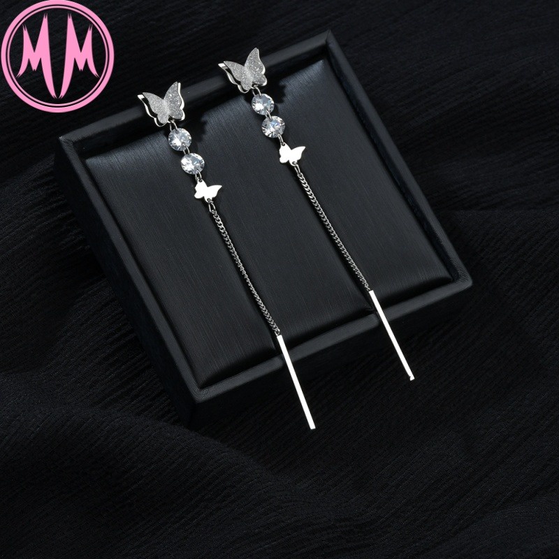MORYMOSHI E162 Anting Wanita Titanium Stainless Kupu-Kupu Panjang Anti Karat Anti Luntur Fashion Korea